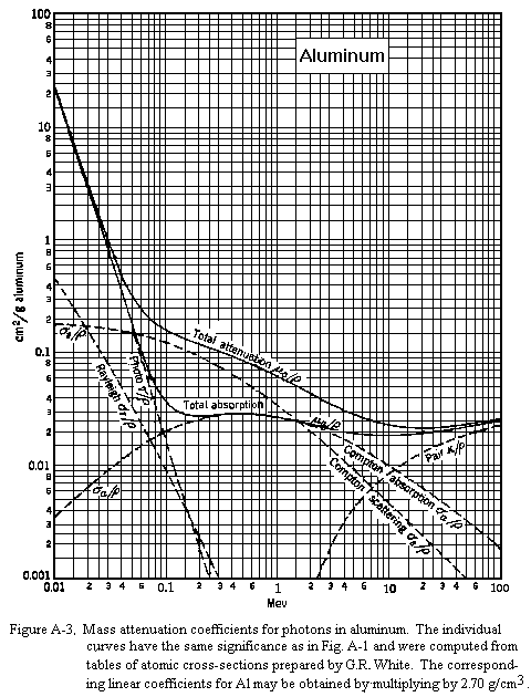 Estimate the efficiency of the GM tube using the attached plot of the total mass attenuation coefficient for aluminum and the energy of a 137Cs gamma ray. Assume that the walls of the tube are thin enough so that any interaction that will scatter an electron in the proper direction will produce a count. Should you use the absorption or the attenuation coefficient? (see Evans, p. 686-689) Is the air between source and detector important? Is the mass attenuation coefficient for air comparable to that for aluminum? Consider the shape of the wall(s) of the tube. (See SUGGESTION below.)